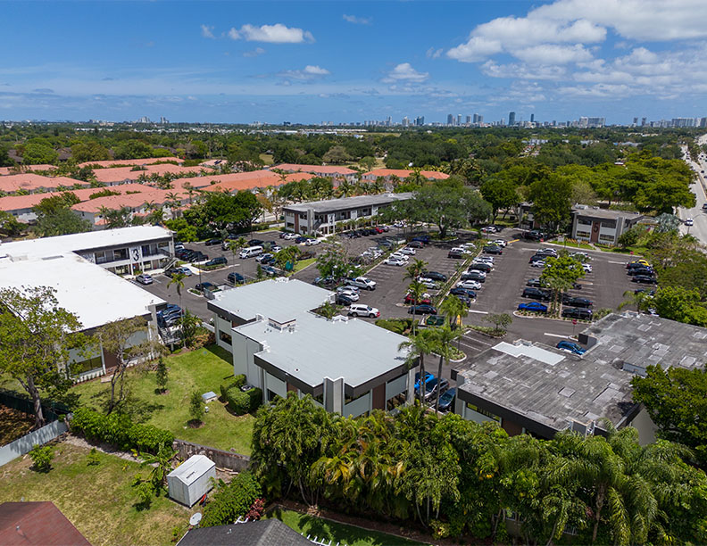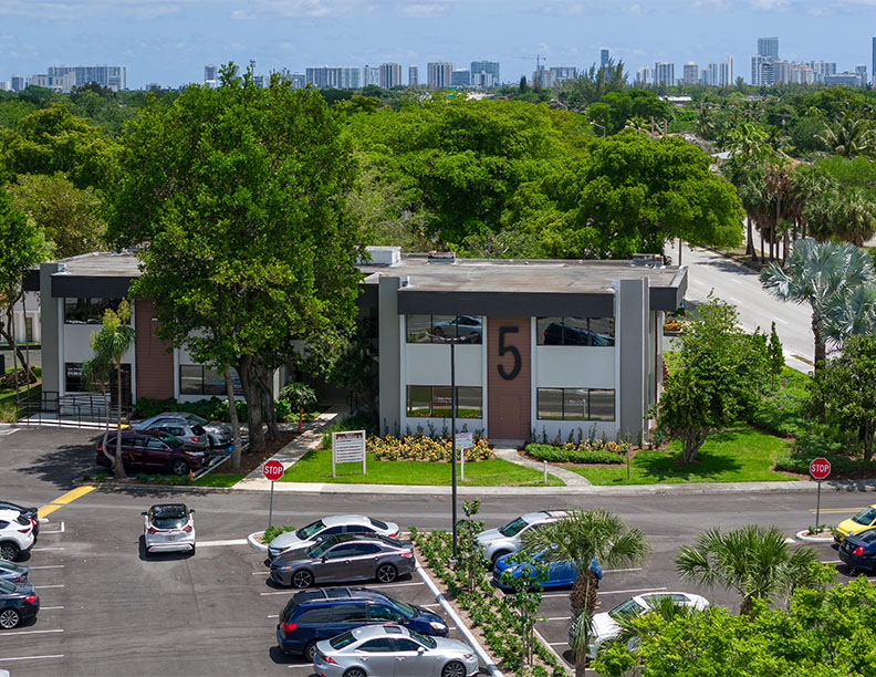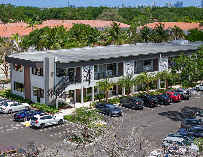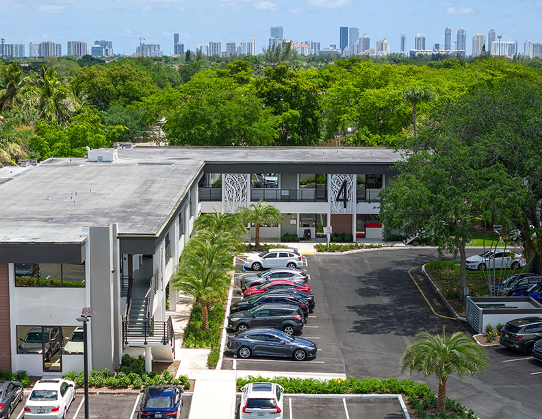 Project Scope of Work consisted of exterior improvements to an existing 5-building commercial office complex (approx. 60k sf), exterior demolition of exterior skin and wood elements, new stucco/paint, new architectural elements at façade areas, new railings throughout, new exterior walkway finishes, new garage enclosure doors, new asphalt overlay + curb work, new sidewalks throughout, and other general exterior updates throughout the buildings.